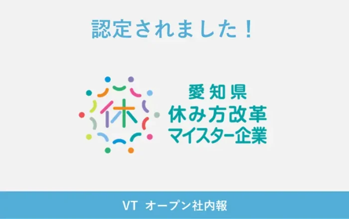 このたび、VTホールディングス株式会社は、「愛知県休み方改革マイスター企業認定制度」において「ブロンズ」認定を取得しました!